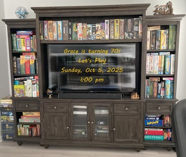 To marry those loves Grace is asking that you bring a favorite board game or one you've always wanted to play to give away.